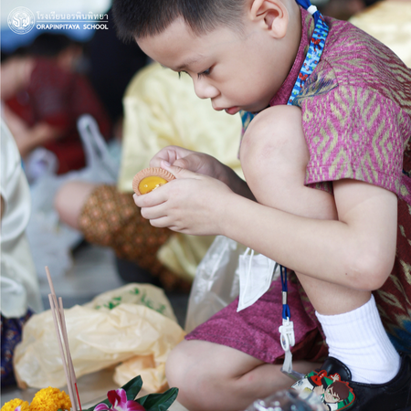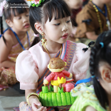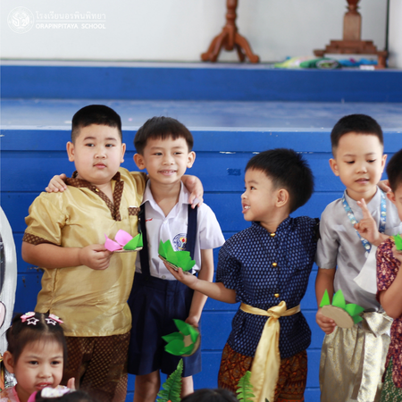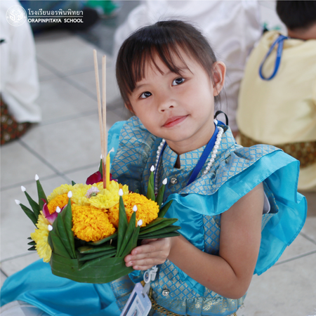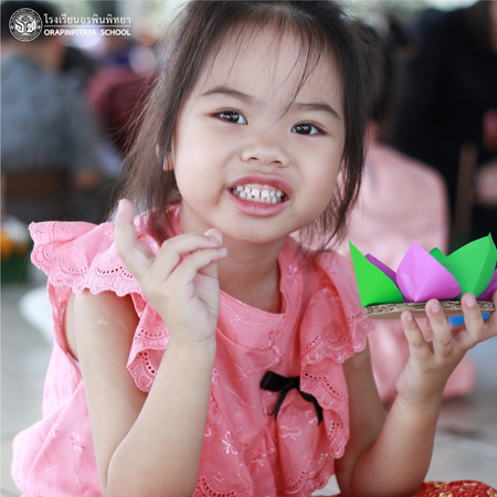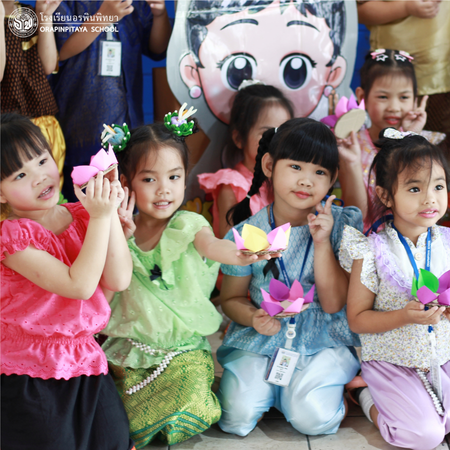 น้องๆระดับชั้นอนุบาล โรงเรียนอรพินพิทยา แต่งกายด้วยชุดไทยแสนงดงาม ร่วมกันประดิษฐ์ "กระทงแสนสวย" เพื่อสืบสานประเพณีอันงดงามของไทย ทั้งสนุก ทั้งได้เรียนรู้ความหมายของวันลอยกระทงไปพร้อมกัน |