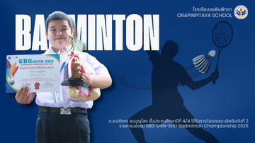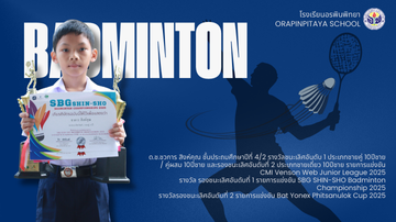 ด.ช.ปภังกร สมบุญโสด ชั้นประถมศึกษาปีที่ 4/4 คว้ารางวัลรองชนะเลิศ อันดับที่ 2 รายการแข่งขัน SBG Shin-Sho Badminton Championship 2025 |
