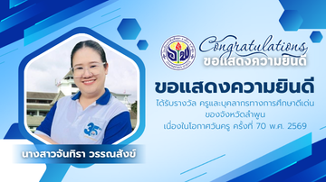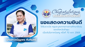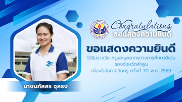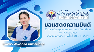 ขอแสดงความยินดีกับคุณครู เนื่องในโอกาสได้รับรางวัล "ครูและบุคลากรทางการศึกษาดีเด่น จังหวัดลำพูน" ในงานวันครู ครั้งที่ 70 พ.ศ.2569 จาก สำนักงานศึกษาธิการจังหวัดลำพูน