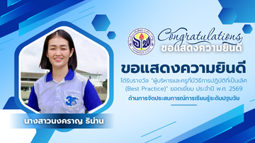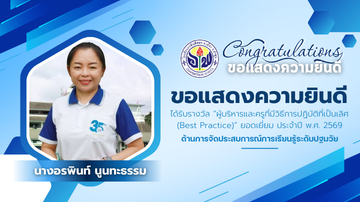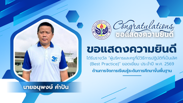 ขอแสดงความยินดีกับคุณครู เนื่องในโอกาสได้รับรางวัล "ผู้บริหารและครูที่มีวิธีการปฏิบัติที่เป็นเลิศ (Best Practice) ยอดเยี่ยมประจำปี 2569