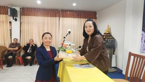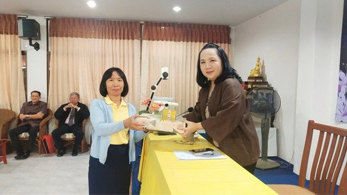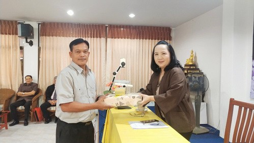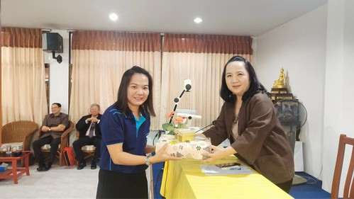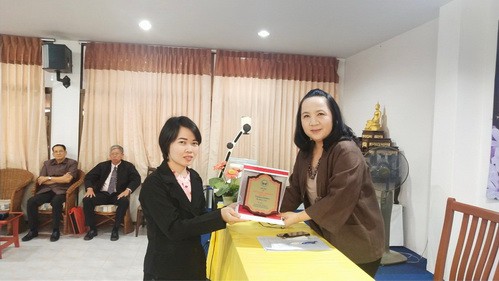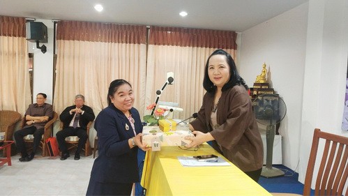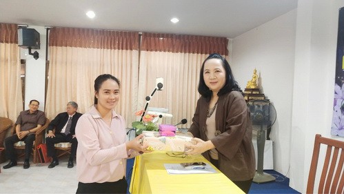 อาจารย์อรพิน ศรีบุญเรือง ผู้รับใบอนุญาต มอบรางวัลเพื่อเป็นขวัญและกำลังใจให้แก่ครูและบุคลากร