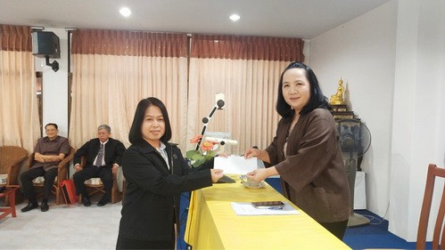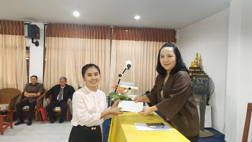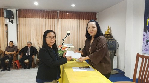 อาจารย์อรพิน ศรีบุญเรือง ผู้รับใบอนุญาต มอบรางวัลเพื่อเป็นขวัญและกำลังใจให้แก่ครูและบุคลากร