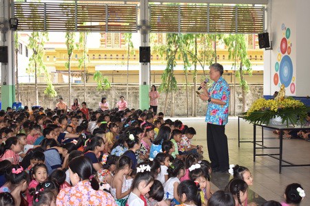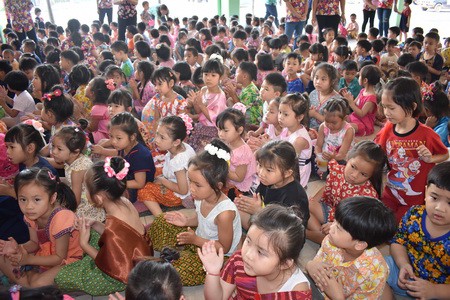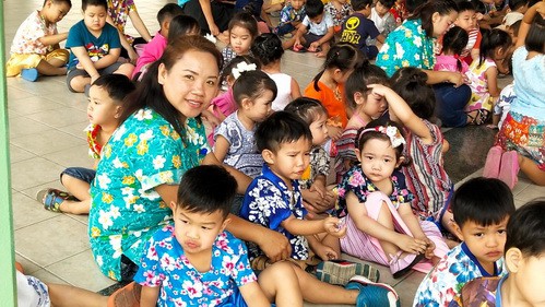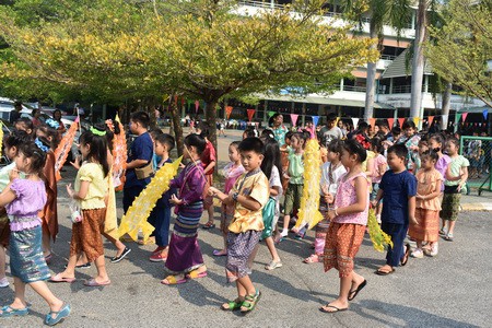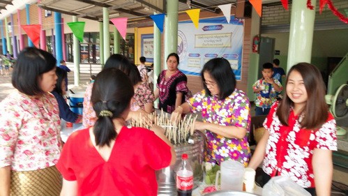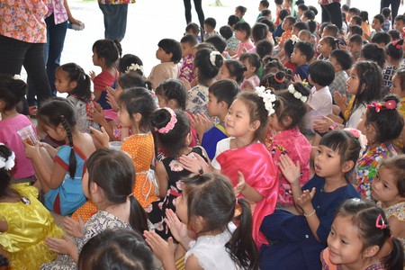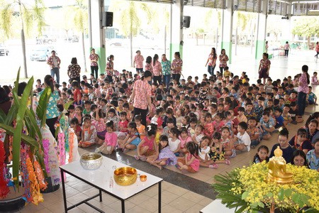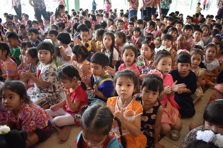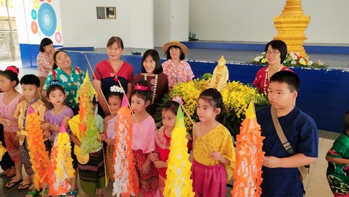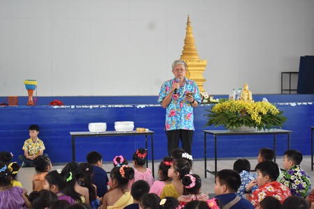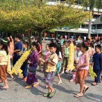 คณะครูและนักเรียนร่วมสืบสานประเพณีไทย ประเพณีสงกรานต์ ปี๋ใหม่เมือง ให้คงอยู่สืบไป
