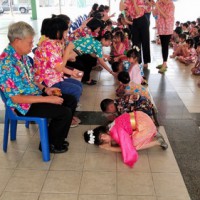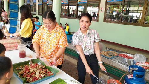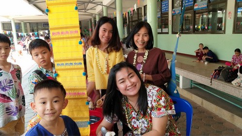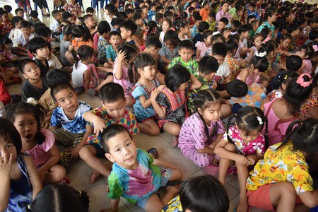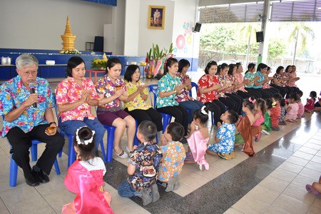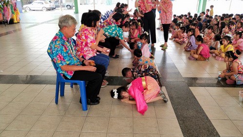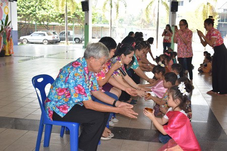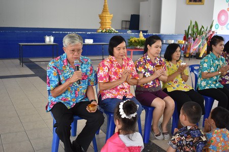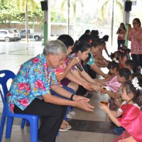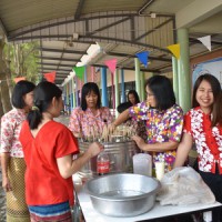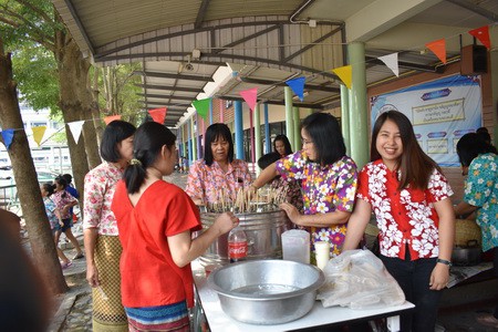 คณะครูและนักเรียนร่วมสืบสานประเพณีไทย ประเพณีสงกรานต์ ปี๋ใหม่เมือง ให้คงอยู่สืบไป