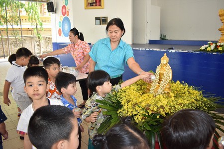 คณะครู-นักเรียนระดับปฐมวัยและระดับประถมศึกษาโรงเรียนอรพินพิทยา ร่วมใจร่วมกิจกรรมสืบสานประเพณีอันดีงามของไทย ประเพณีสงกรานต์ ขนทรายเข้าวัด (หอประชุม) สรงน้ำพระและรดน้ำดำหัว เพื่อร่วมอนุรักษ์ประเพณีวัฒนธรรมล้านนาให้คงอยู่สืบไป |
