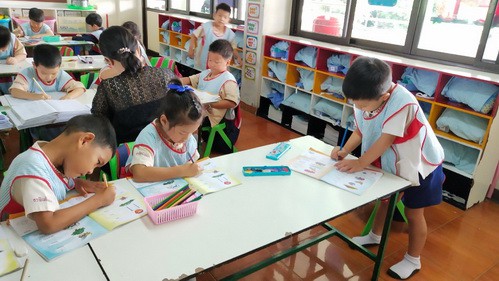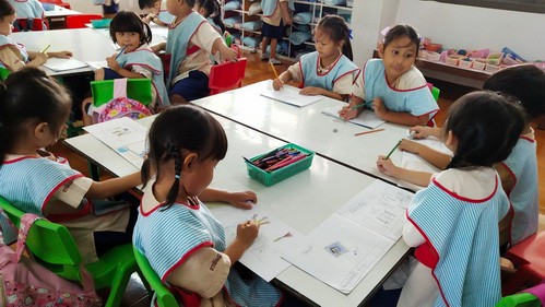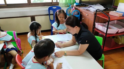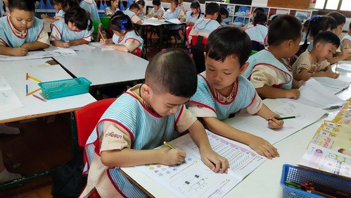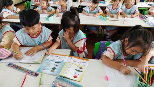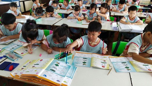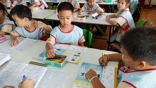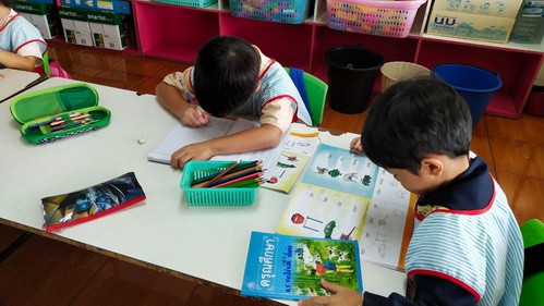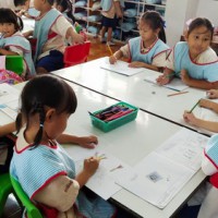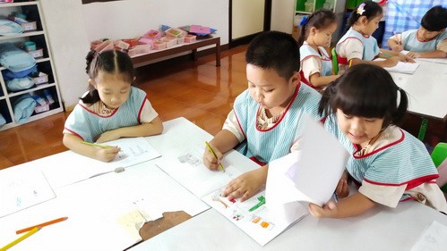 วันนี้ขอนำเสนอภาพของกิจกรรมการเรียนการสอนในห้องเรียนของนักเรียนระดับชั้นอนุบาลปีที่ 3 ซึ่งมีหลายกิจกรรม เช่น การระบายสี การคัดลายมือ การแจกลูกสะกดคำ ฯ และการเรียนวิชา ภาษาอังกฤษ