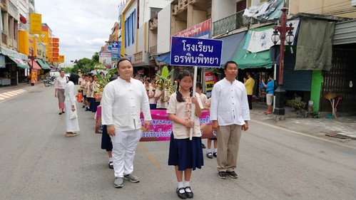 วันที่ 12 กรกฎาคม 2562 เวลา 13.00 น. คุณเกริกเกียรติ ศรีบุญเรือง ผู้ช่วยผู้อำนวยการโรงเรียนอรพินพิทยา พร้อมด้วย คุณครูสงกรานต์ กาวิระ คุณครูสุชาดา แซ่ตง และคุณครูดวงกมล หน้านวล ได้นำตัวแทนนักเรียน จำนวน 50 คน ไปร่วมขบวนแห่เทียนพระราชทานของจังหวัดลำพูน ซึ่งนำไปถวาย ณ วัดพระธาตุหริภุญชัย วรมหาวิหาร