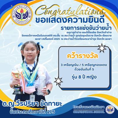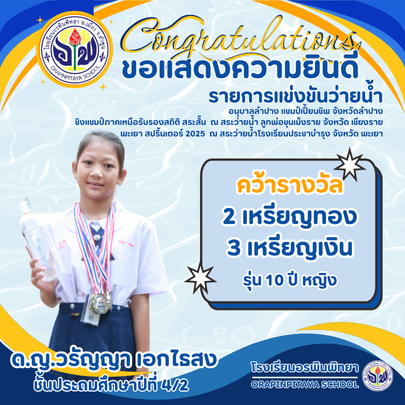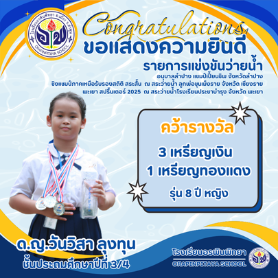 ? ขอแสดงความยินดีกับ ตัวแทนนักกีฬาว่ายน้ำชมรมว่ายน้ำอรพินพิทยา